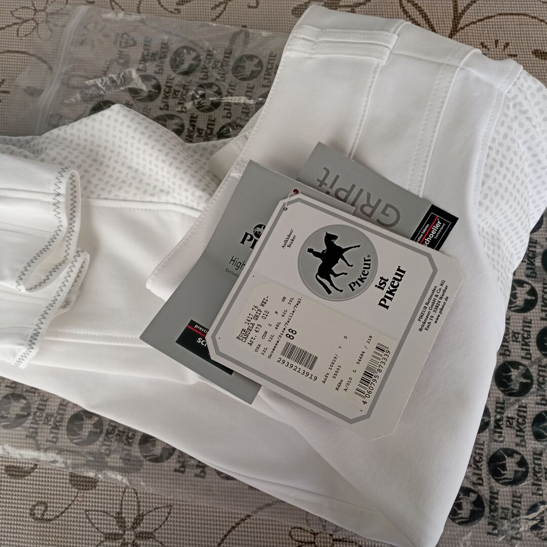!!! New!!! Pikeur breeches white size 88 NP 199€ - New with label. Was a gift, but unfortunately too big. In my opinion, Pikeur tends to cut tighter than other brands. I always wear one size larger. So rather a 42 long size. Shipping or pick up Private sale, no guarantee or returns