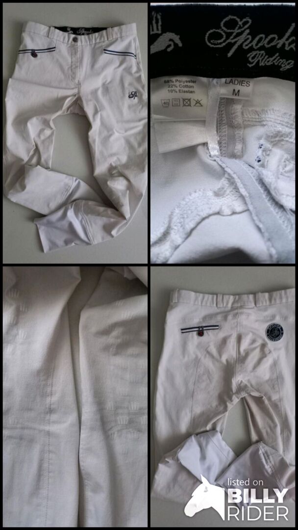 ⭐️Spooks⭐️Weiße Competition breeches/knee grip in size M - Breeches in good condition with knee grip by Spooks in the manufacturer's size M. Color: white. Has normal signs of wear, such as slight discoloration on the seat and legs from the saddle leather. Otherwise in tip top condition, no holes or similar. Where there's wood, there are chips! Ready for the 2nd round. NP was 130 €.
