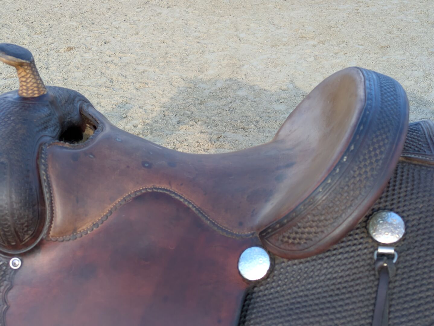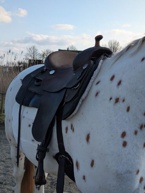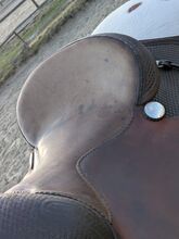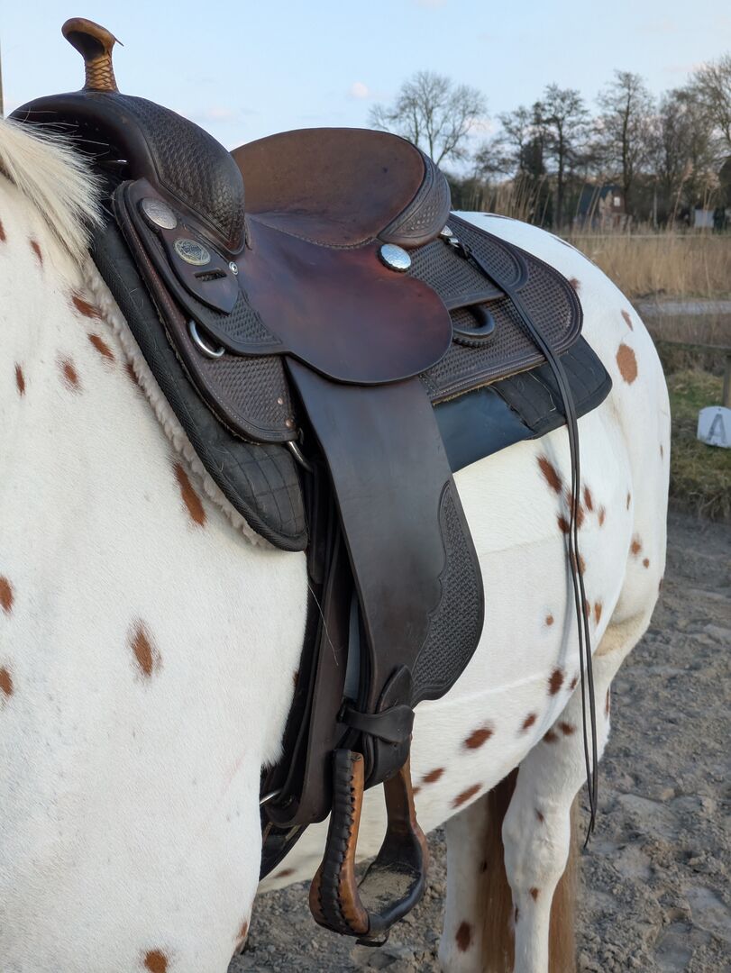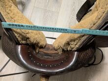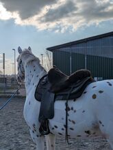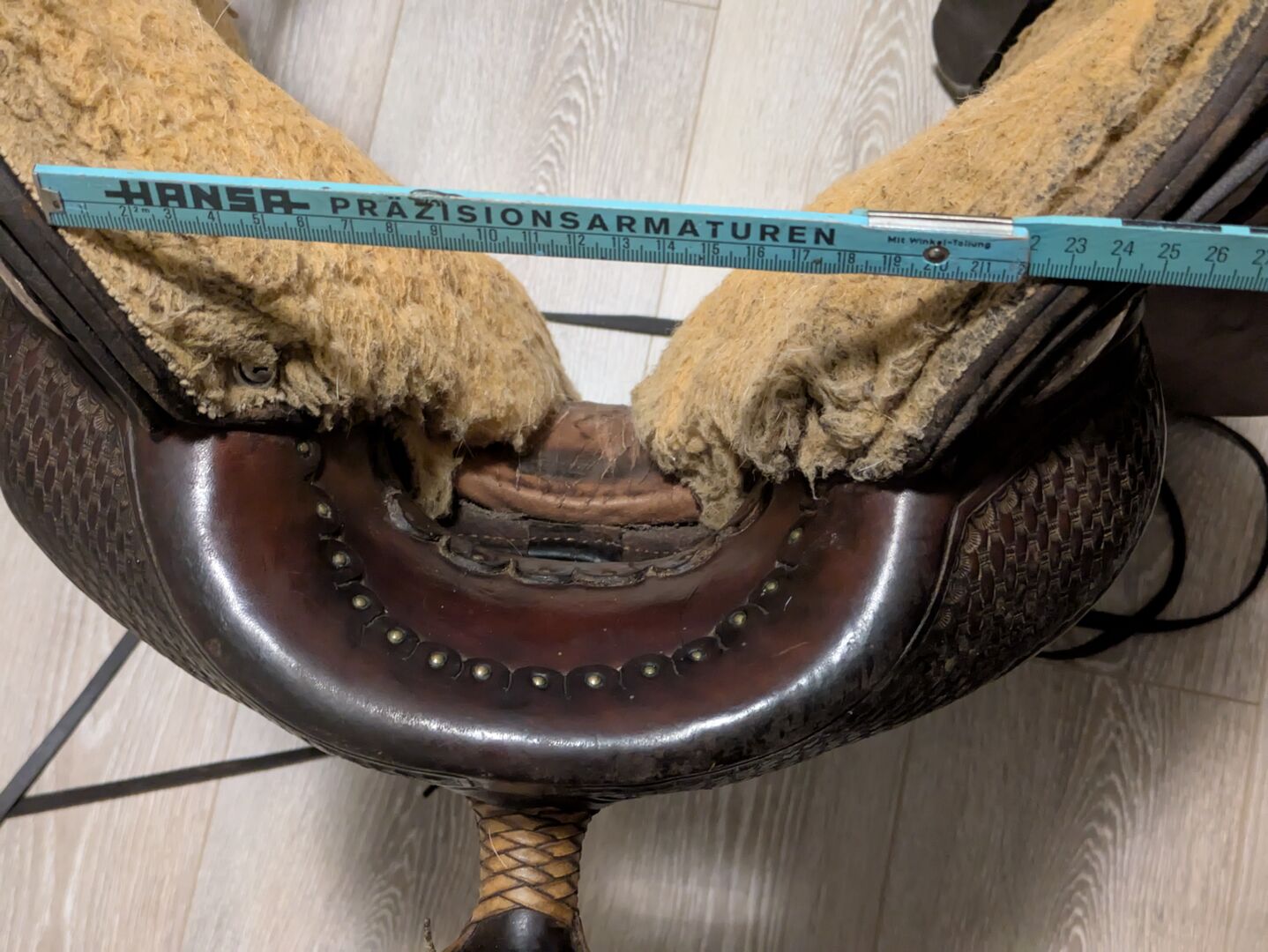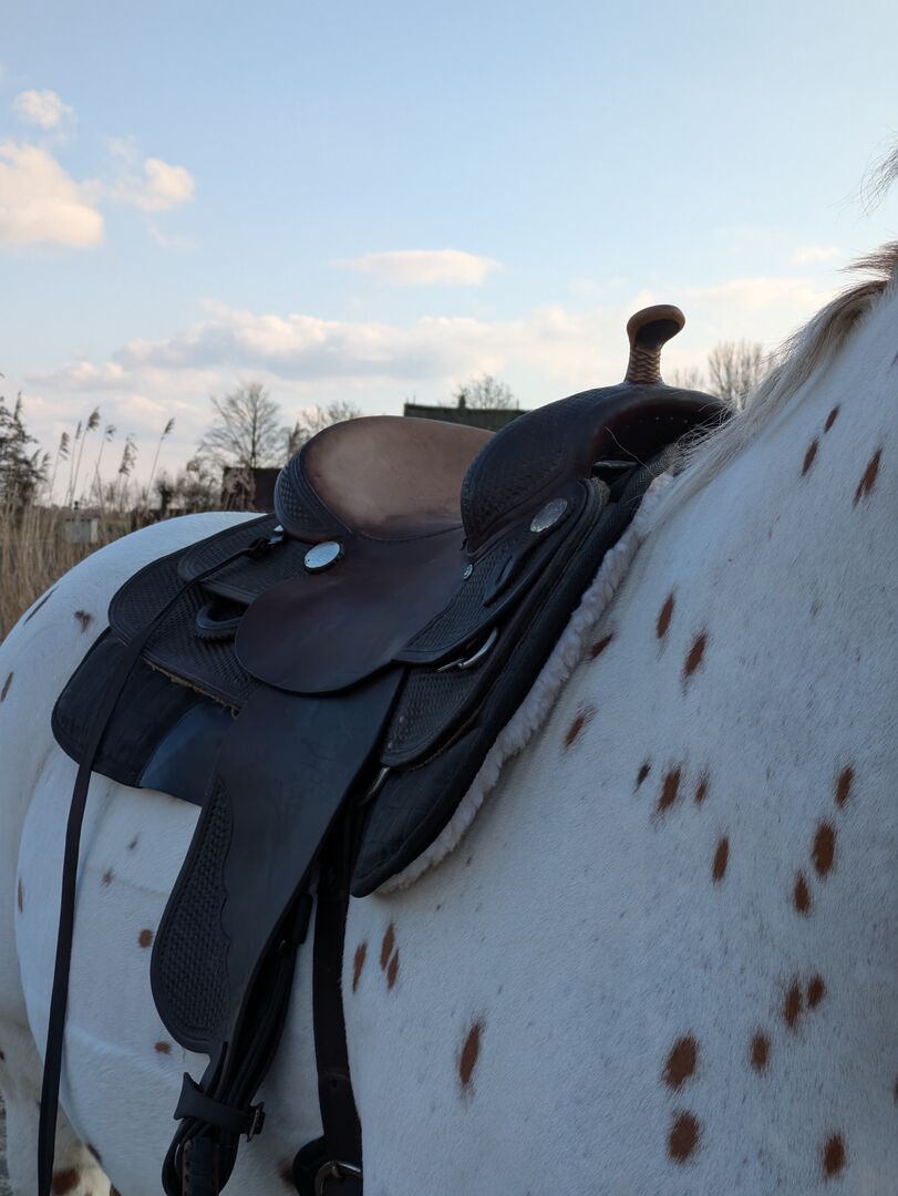 The saddle belonged to my old Haflinger mare, who has sadly passed away. She was stocky and broadly built and had a little swing in her back line. Unfortunately, it doesn't fit my Knabstrupper gelding, so I have to part with it with a heavy heart. In terms of the swing, however, he is also a good fit there due to the larger withers and the slightly rising topline. Signs of use are of course present