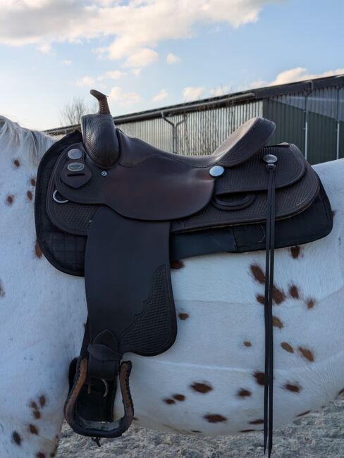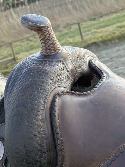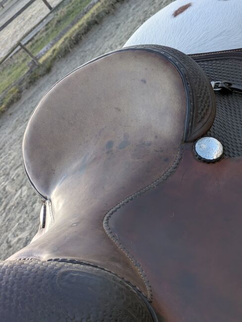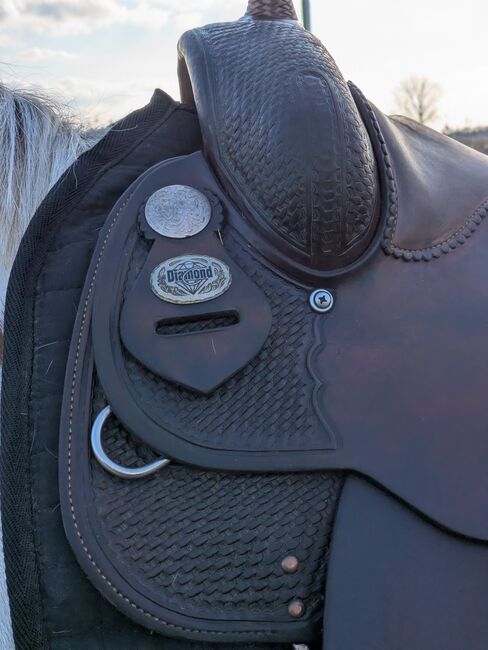 **TOP** Western saddle Diamond C 16 inch Quarterhorse tree Fork 02 - Bought new for my mare from the dealer several years ago and ALWAYS VERY well looked after. The saddle has never had an accident or fallen off. Top quality leather and workmanship as you would expect from Diamond C. The leather is now soft and supple. A real collector's item. You sit on it like on clouds and feel very close to the horse.