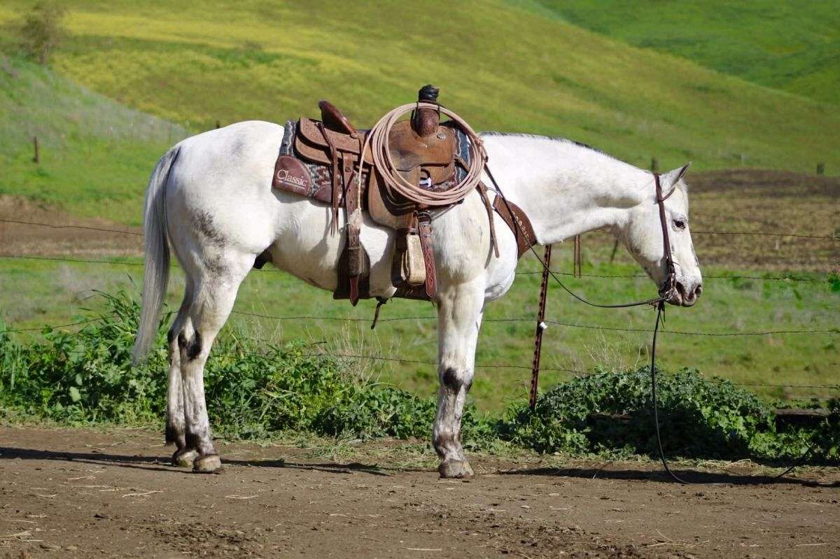 Big Chief-The one you have been searching for If you’ve been searching high and low for your dream horse but haven’t found the one yet, look no further — Big Chief is it. This handsome grey Appaloosa has it all: eye-catching looks, a gentle nature, and an exceptional mind. He’s truly the kind of horse every barn needs. Big Chief is an 10-year-old, solid 14.3 hand gelding who is extremely correct and balanced. His striking grey Appaloosa coat catches the light beautifully. He’s the kind of horse that turns heads wherever he goes, yet stays quiet and humble about it. Anyone can ride Big Chief — he has a way of making every rider look good. He’s calm, slow, and collected, with absolutely no spook. He lopes easy, picks up his leads effortlessly, and has a smooth, correct way of going. In the arena, he’s capable and stylish without ever feeling busy or demanding. Outside, Big Chief is just as impressive. He’s been ridden on trails, through rocky terrain, and while gathering cattle, confidently navigating hills, trees, and uneven ground. Wildlife doesn’t bother him, and he stays relaxed whether riding alone or in a group. Roads, traffic, and town environments are no issue — cars going by don’t faze him one bit. Big Chief has been roped on in branding pens and is started nicely out of the box. Obstacles like bridges, tires, and flags don’t concern him — he handles them quietly and willingly. He’s been hauled, paraded through town, and ridden by children, always staying calm and dependable. He handles time off well, is current on vaccinations and Coggins, and is great for the farrier and veterinarian. Big Chief is happy in a stall on rainy days and enjoys pasture turnout just as much. He’s friendly, enjoys being groomed and pampered, loves his cookies, and stands patiently for grooming and tacking. He is an absolute pleasure to be around, and we’ve enjoyed every minute with this special horse.