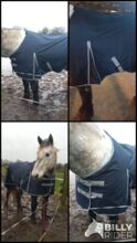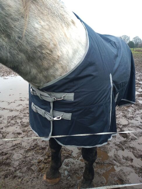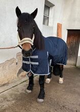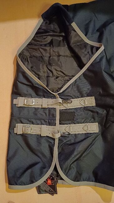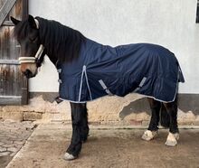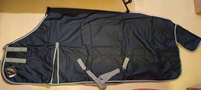 BTS 1680D PES rain winter blanket with 50g, uv stable, 5000mm water column EPOCH special fabric Breathable from -20° to + 45° according to the manufacturer (see label) welded seams, underside made of fur-friendly PES, 100% waterproof, 100% windproof, double chest closure with protective Velcro to prevent unintentional opening, quick opening with carabiner, gusset, Cross surcingles with rubber ring to prevent unintentional opening, tail cord, looped detachable leg straps with carabiner, deep tail flap, Neck circumference 151cm, 105cm side depth, Rug can be personalized (label to add name), Weight approx. 4kg for RL 175cm Blanket with carrying bag, Machine washable. Luxury goods at a low price.