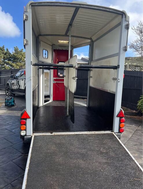 2017 Ifor Williams HB506 double horse float, well known for being safe, solid, and easy to tow. Designed to comfortably carry two 16.2hh horses. Features an aluminium blanked floor fitted as standard, covered with 12mm thick rubber matting for excellent grip, vibration absorption, and durability. Runs on 4-wheel mechanical brakes, so there’s no need for an electric brake controller, while still safely carrying two large horses. Standard features include: Spare wheel with cover Sliding side windows Aluminium floor with protective rubber matting Full centre partition External tie rings Interior light Door-mounted tack pack (worth over $500) Roof ventilation Front gas-assisted unload ramp (right-hand side) Rego valid until July 2026 WOF valid until November 2026 Purchased brand new and comes with all receipts and full paperwork. Available for viewings. Delivery can be arranged at an extra cost. A tidy, reliable float ready to go.
