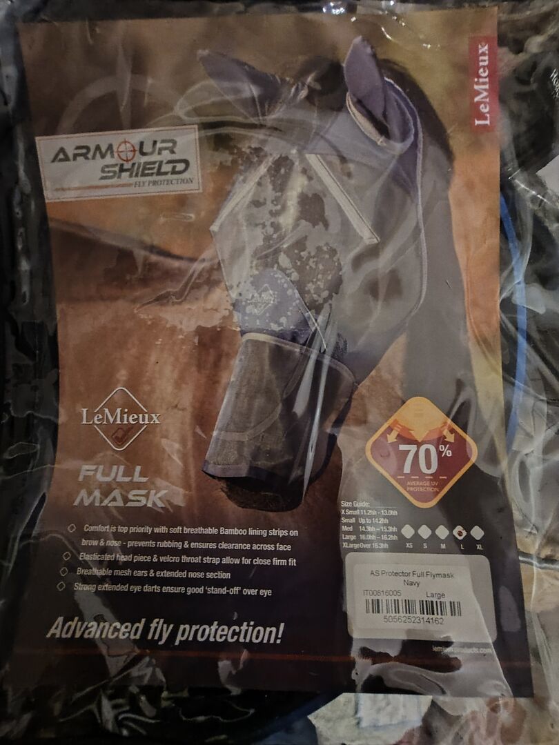 3 LeMieux fly mask ArmourShield Pro size L - I am selling a total of 3 very good condition ArmourShield Pro fly masks from LeMieux in size L. I have 3 of them to change and clean them when they were dirty. Unfortunately, they turned out to be a bit too big for my mare and she chafed her face (because they didn't fit) (typical mold 🫣)