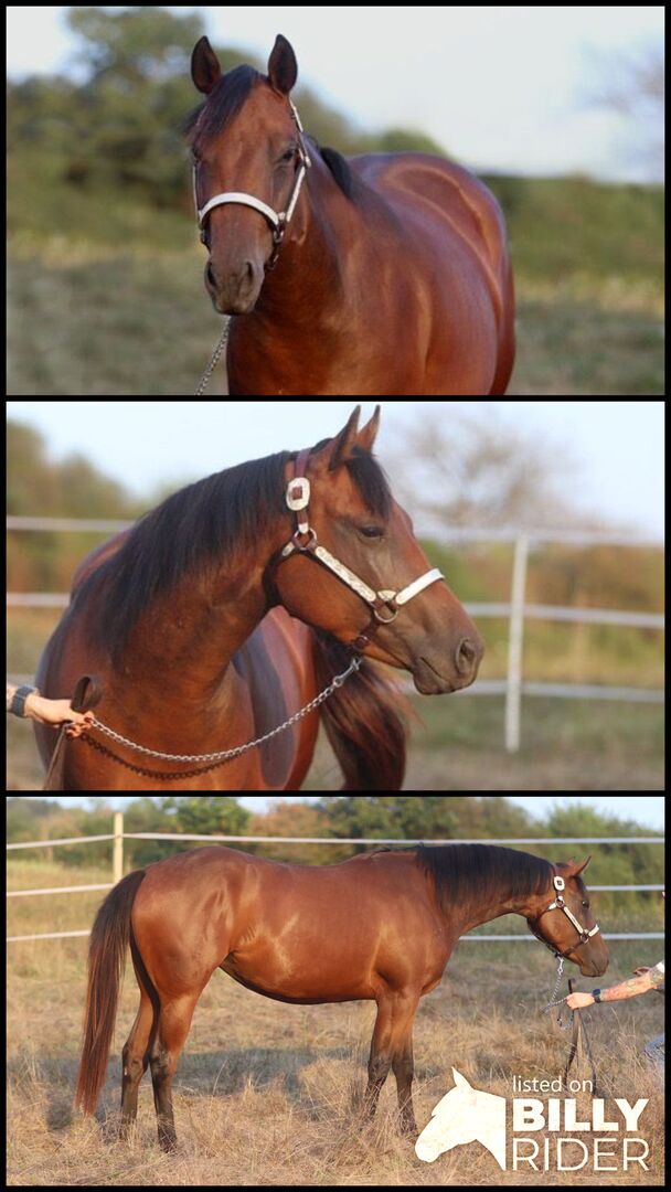 4 year old QH mare for sale - MS Honeymoon (OITM x ZMGB) is a friendly and bright QH mare that I am selling due to downsizing in the stable and expansion in the nursery. She was allowed to grow up in a mixed herd of mares in an open stable, has been worked from the ground so far (lunge, hand horse, walking, double lunge started) and is to be broken in as a 4-year-old in spring 2026. So if you are looking for a pleasure horse that is not ready for the Futurity at the age of 3, this is the right horse for you. Note for the smart ones: No, there is no catch here, no health background that the horse has not yet been ridden. She has a very good paper and very nice movements, especially the lope is excellent. Honey knows indoor/outdoor, children, farrier, driving a trailer (also crosswise), dogs, has been wormed regularly (4 times a year), is vaccinated against tetanus and can also be vaccinated against influenza and/or herpes before moving out (at my expense). The buyer is welcome to order an AKU to any extent.