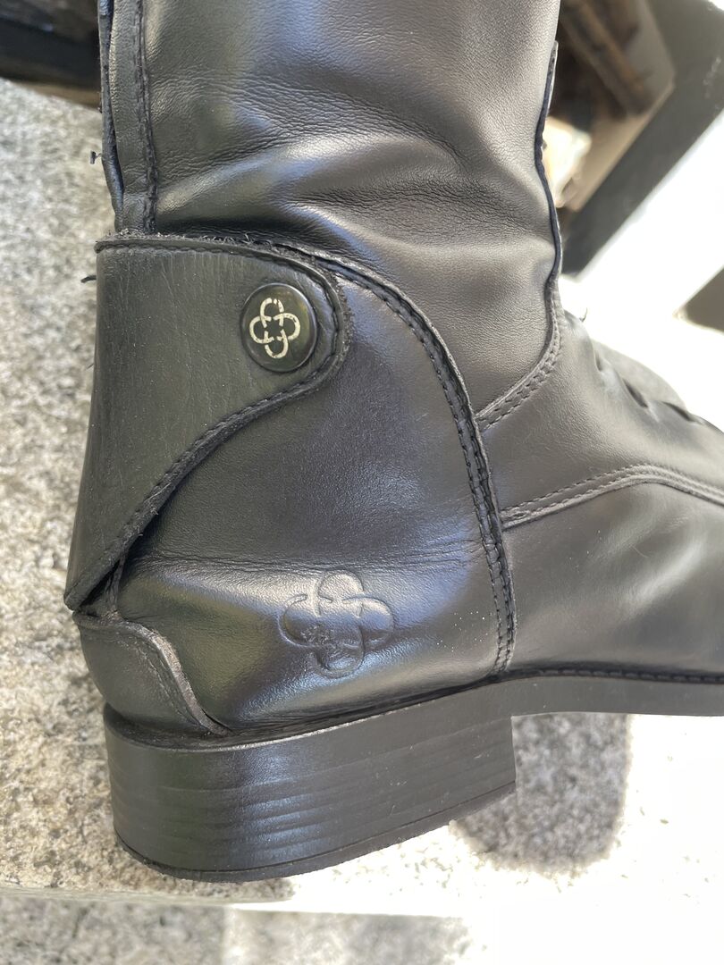 4RIDERS RIDING BOOTS ECOSTAR size 39 black - The riding boot "Ecostar" by 4RIDERS is made of genuine leather on one side and synthetic stretch leather on the other. This makes the riding boot very elastic and fits the leg very well. With a chic lacing in the front, this boot is also a visual highlight.