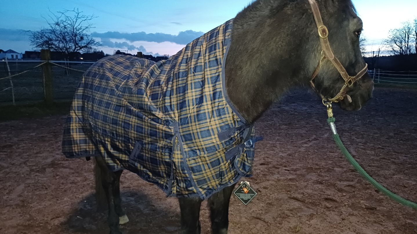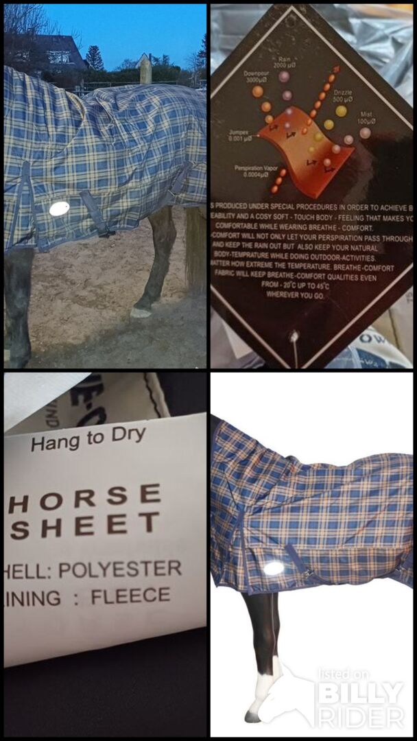 600D eQuiTack rain rug highneck 135 145 155 blue plaid with polar fleece 3000mm - Remaining stock of rain blankets from company closure of eQuitack GB, sale with discount, instead of 98,50€ each 50,00€.