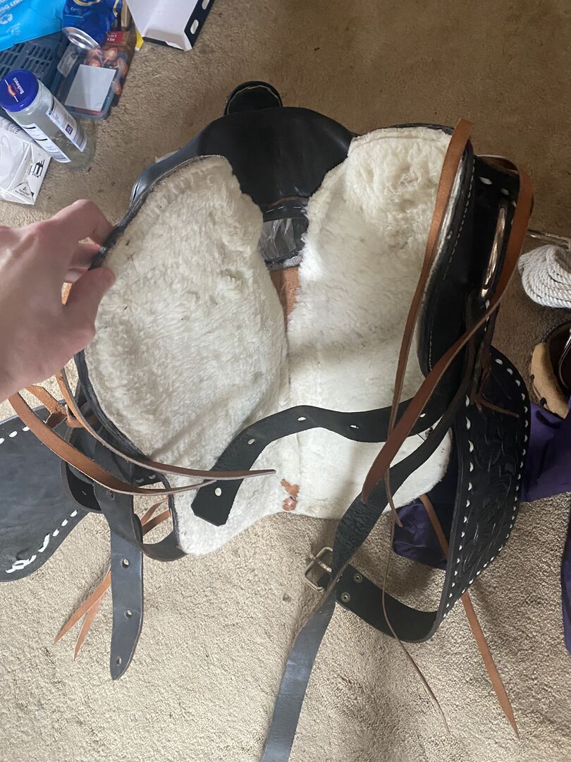 for sale, 16inch saddle. Has 3 different colours of full thick leather. Unbranded and great condition