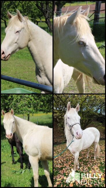 A dream in smoky cream - Location: 06618 Naumburg Jack Pine Forever - a healthy, well-built Paint Horse gelding, born on March 31, 2023, in a rare smoky cream solid color with two bright blue eyes - a real eye-catcher! With a current height of approx. 147cm, he is harmoniously muscled, robust and perfectly proportioned. His character makes him something very special: trusting, cuddly and people-oriented, he is friendly and eager to learn right from the start. He is well-behaved, uncomplicated and attentive, knows about visits to the vet and farrier, is regularly wormed and is very familiar with open stabling and grazing. Jack Pine Forever already has the foal ABC and is carefully lunged, making him ideal as a young horse for self-training. His solid all-round pedigree, 5-panel n/n through his parents and full Paint Horse papers make him a versatile leisure partner who will later provide pleasure in many areas. This cool young horse combines soundness, character and beauty - perfect for anyone looking for a reliable, willing to learn and eye-catching horse. Jack Pine Forever is waiting to grow and shine together with his new owner!