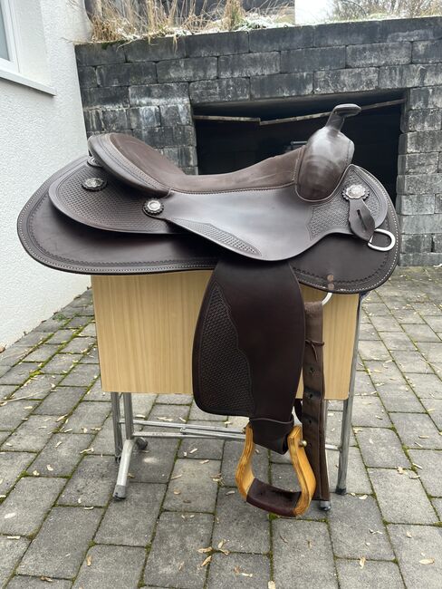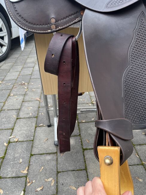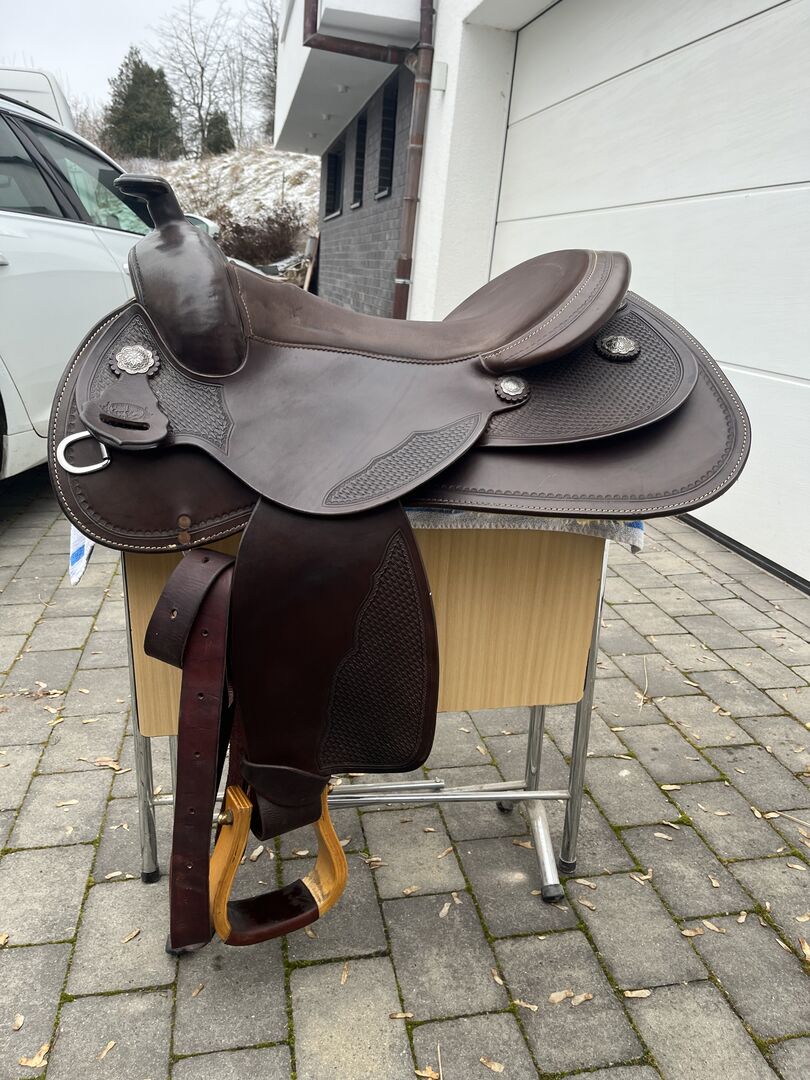 Alabama Saddlery, S294 for wide horses - Selling 2 1/2 year old saddle (invoice available), as it unfortunately no longer fits my horse. Alabama 301, dark brown, flex tree, basket hallmark, 16" seat, with wooden stirrups. For wide horses with a straight back and low withers. NP was 2000 €. Shipping possible.