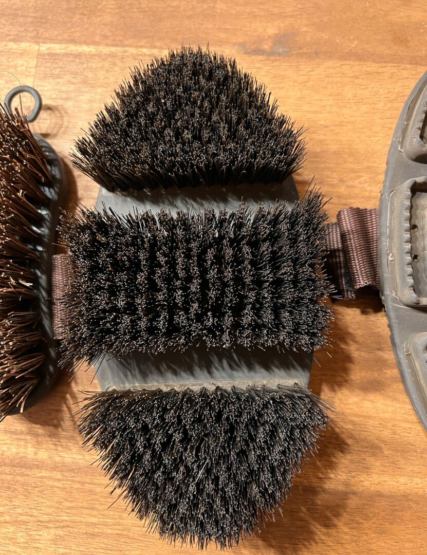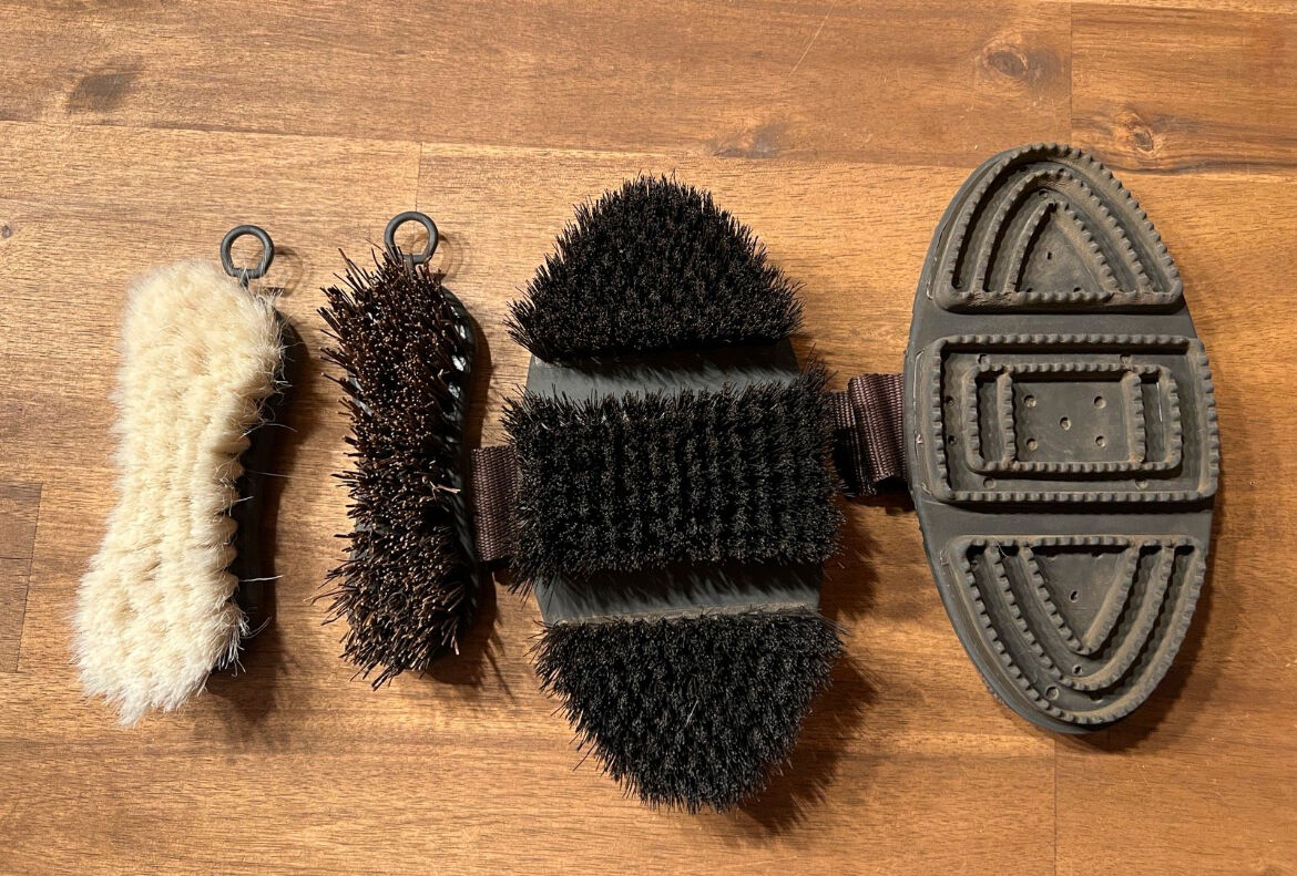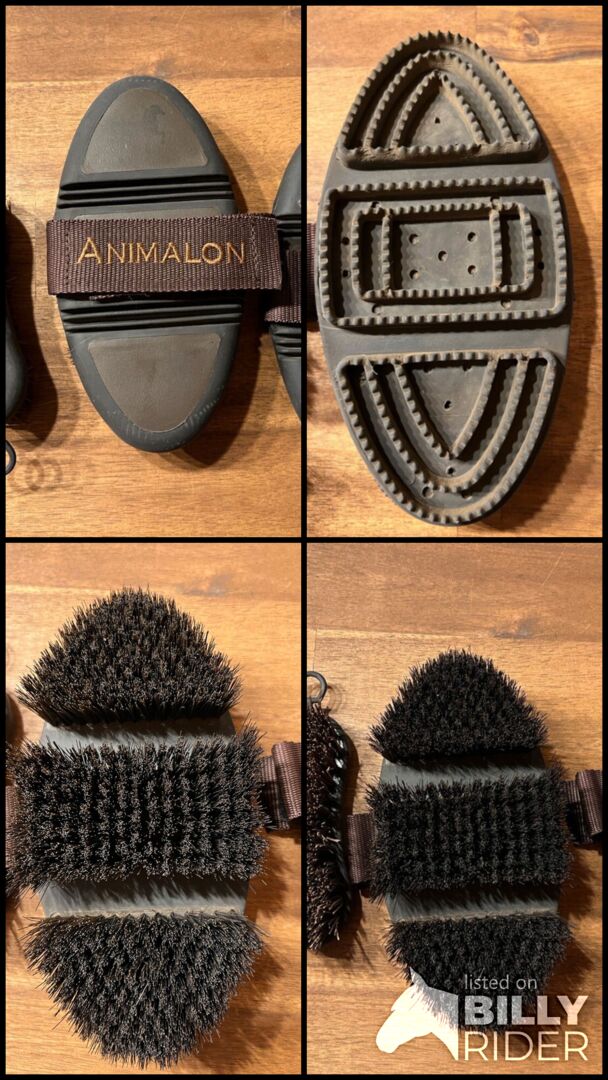 Animalon brush set 4 pieces - Sell here a used but in very good condition brush set from Animalon consisting of: Careflex grooming brush, Careflex rubber curry comb, goat hair face brush and natural bristle hoof brush. The grooming brush and curry comb are used but in very good condition, the face brush and hoof brush are both new as I have not needed them. Since all brushes were in the grooming box, they are all cleaned of course and therefore ready to use. The Kardätsche and the curry comb can be perfectly adjusted to the hand by means of Velcro hand strap, so you do not get a cramp in the hand.