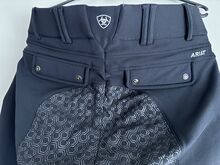 Features: Core Control Technology™ enables a slim silhouette Calf Fit System™ (CFS™) provides a snug compression fit under boots Ariat® V3® waistband provides a snug yet elastic fit for different hip positions Moisture Movement Technology™ wicks moisture away from the skin Full seat made of non-slip silicone with textured surface provides a secure hold in the saddle Wind-repellent Striking logo decoration Patch back flap pockets