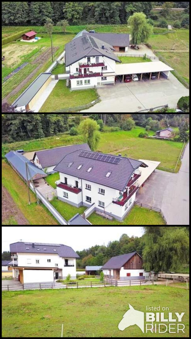 Austria, Carinthia, Klopeinersee - House with 6 residential units and horse stable for sale! - Austria, Carinthia, near Klopeiner See Well-maintained property with 6 modern apartments and a stable in a beautiful green location Approx. 6,000 m2 plot of land 🔸446 sqm living space with 6 separate residential units (98 m2 - 1/2 bedroom, 80 m2 - 2 bedrooms, 69 m2 - 2 bedrooms, 68 m2 - 2 bedrooms, 66 m2 - 1/2 bedroom, 65 m2 - 2 bedrooms) - each with garden, terrace or balcony (3 units are currently rented out) 🔸Stable building with 3 large boxes and 1 smaller box (can be extended) 🔸Hayloft with plenty of space for hay and straw bales, electric transport system for the bales 🔸Covered cleaning and washing area, additional room (tack room or similar) Paddock with shelter and hay rack, riding arena, pasture area (of which approx. 3,000 m2 dedicated as building land) 🔸5 carport and 2 outdoor parking spaces, storage room, currently used as a workshop and storage for tractor and carriage 🔸 Riding trails, cycle paths, hiking routes & canoeing routes in the surrounding area, 5 min to Lake Klopein, only 15 minutes by car to Klagenfurt & airport