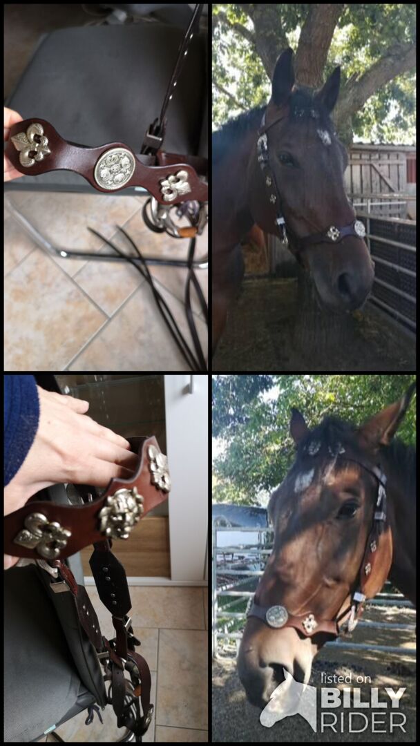 Baroque snaffle in brown warmblood - Sell a brown baroque snaffle in size warmblood. Is about 5 years old. But only hung in the closet. There are still reins (Western) leather and a double bit. Since private sale I take no warranty and no return.