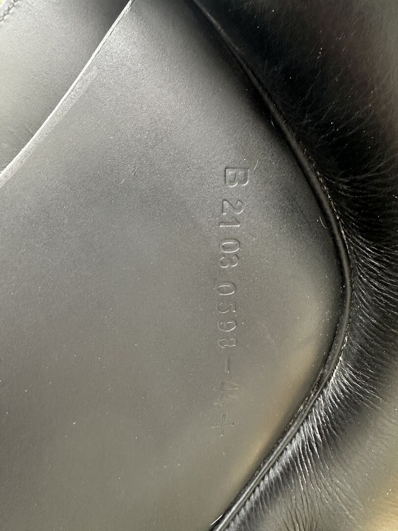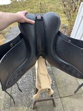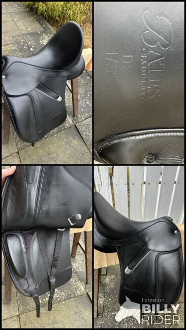 17.5" - Selling a Bates Dressage in great condition as it no longer fits our new horse. The red gullet plate is fitted.