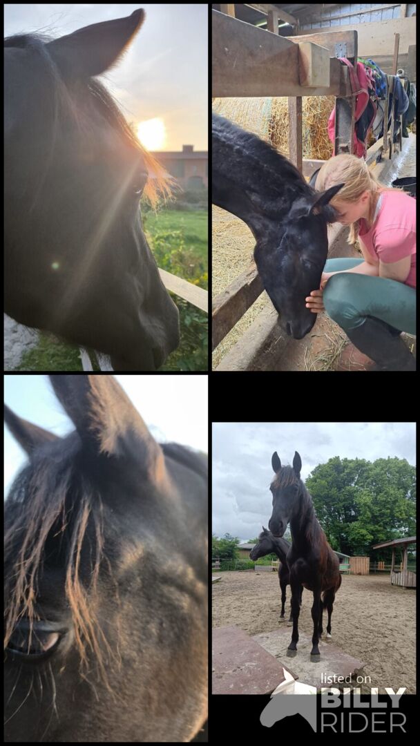 Beautiful mare soon to be a small horse - Beautiful Baroque filly Knabstrupper x Friesian (sire) with great gaits (really nice movements) for sale. (Unfortunately, I suddenly have to take care of my seriously ill mother, which also means time and financial losses). Tromma was born at the end of April 2023. Her lovely mother can also be viewed. Sweet Tromma is chipped+ has a passport, is vaccinated and wormed. She learns quickly, walks well on a halter (also through the field and alone on a lead, away from the herd), can of course give hooves, is people-oriented and loves to be cuddled all day long. She knows children, dogs, cats and tractors. She is ready to go out, with a little patience she will go on the hanger. Tromma is very eager to learn, courageous and curious and always wants to belong. She will probably be about 1.50m (mom 1.48m, dad 1.52m, pictures available). She first lived with us in a mixed herd, now in a small herd of mares of the same age and mare training in an open stable with daily paddock access. She is relaxed and knows campfires, paddling pools, various play equipment and noises. So if you want to train your own horse, you will definitely have a lot of fun with Tromma. I can imagine her as an impressive riding horse, but also as a carriage horse. Meet and greet desired and possible at any time by arrangement. Private sale. No guarantee. No return. Full payment before loading.