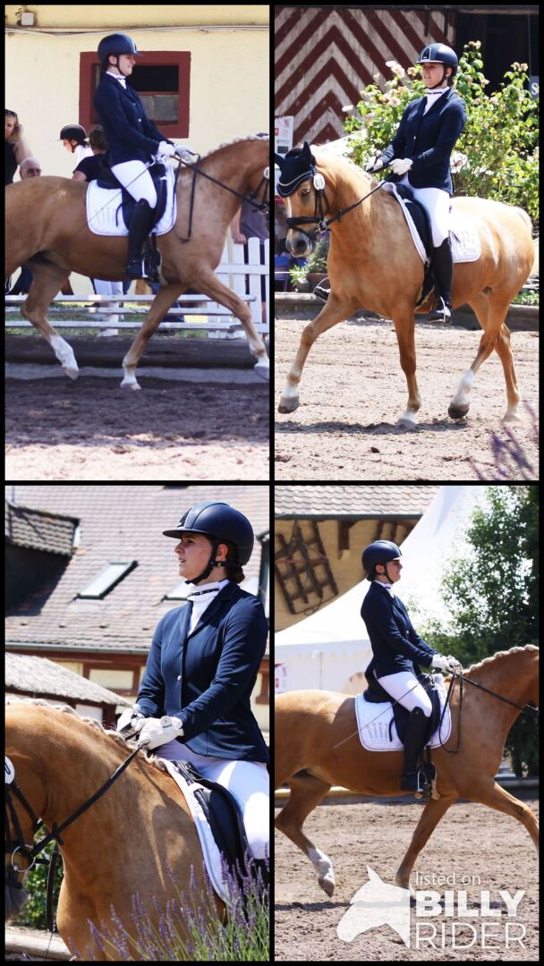 "Cassie" is a very well-behaved and always manageable mare, not only by her appearance directly catches the eye, but also by her cuddly nature and honest character. She is always well-behaved at shows and a real collector of ribbons, she could dance this and last show season, many high A placings and victory up to L placement in dressage. She is absolutely L safe and is currently learning all L** lessons, always being motivated and learning very quickly. Furthermore, cassie has three good GGA, where the step is particularly emphasized.But not only in dressage she could collect successes, also in jumping she is highly placed and has already won E jumping with scores of 8.2 . The jumping was not further promoted by us at the tournament. At home she jumps single jumps on L level and without problems an A course. She is suitable for children but not a sleeping pill, with us she was ridden once or twice by small children and behaved exemplary! She is easy to ride through the neck, covers even larger riders super and forgives even times mistakes of the rider!