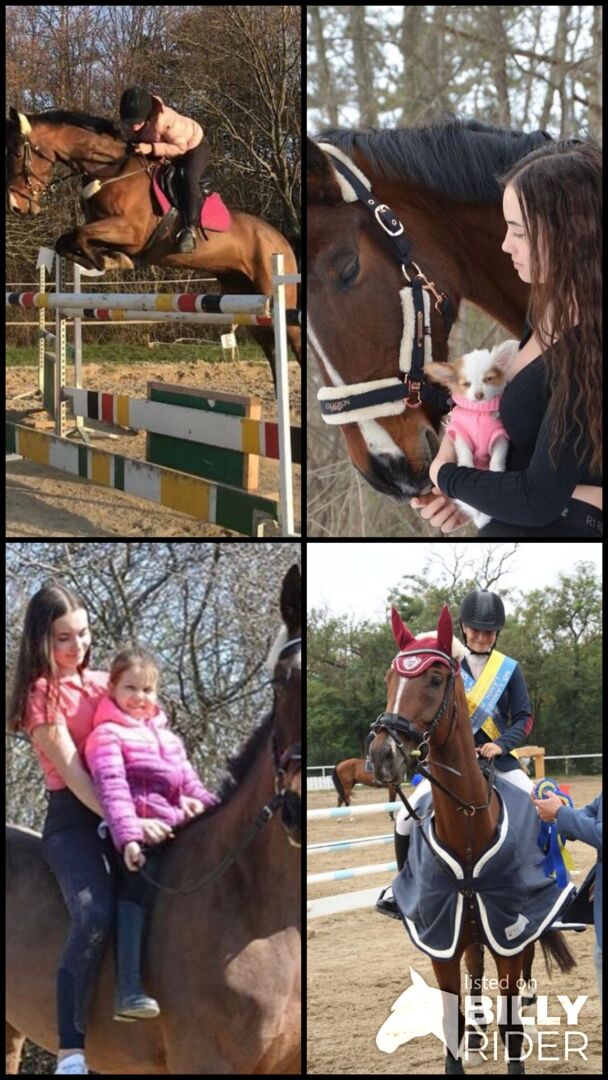 In handling she shows herself as an absolute reliable horse and can be handled well in every situation and is pleasant and calm. Lamour has already won several placings and a championship title. In jumping she shows a lot of ability. She has been victorious in tournaments up to 1.20. She has also been shown and placed at dressage competitions and is pleasant to ride due to her soft gaits and sensitivity. However, she is also ideal for leisure activities and enjoys going for rides both in a group and on her own. She is an absolutely good-natured mare and therefore also super suitable for children or beginners. She has already successfully passed her rider passport, needle and license examinations. Because of her talent in all disciplines, I can also imagine her very well as an eventing horse.