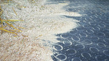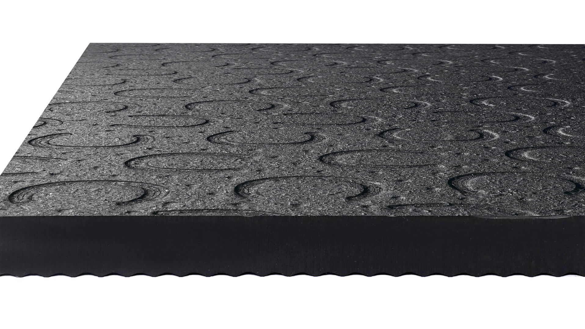 Surface: Horseshoe profile Underside: grooves Thickness: 18 mm Dimensions: 1 m × 1 m, puzzled on 4 sides