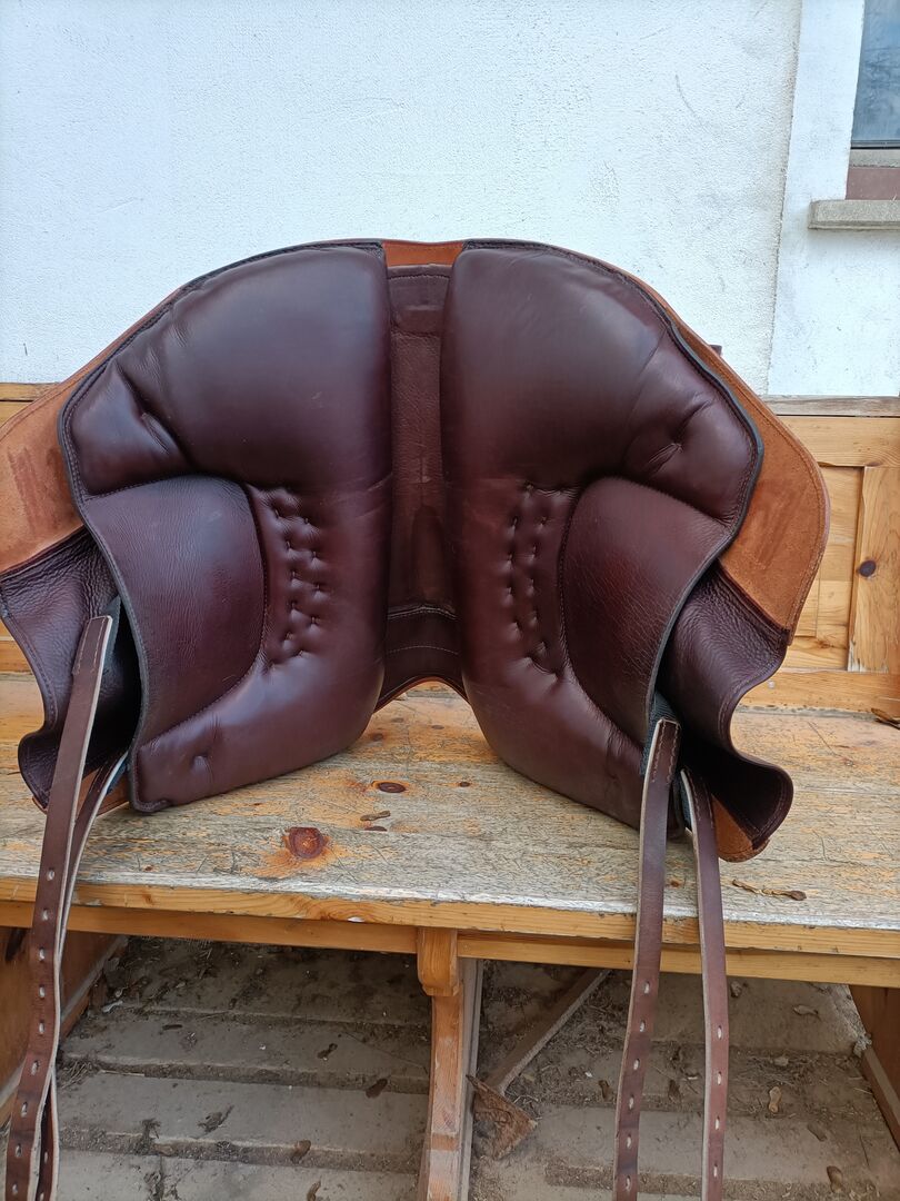 Bent Branderup training saddle - For sale is a high-quality training saddle according to Bent Branderup, ideal for classical work and fine aids. The saddle impresses with its simple, functional design and enables a very good connection between rider and horse. Perfectly suited for academic riding and sensitive training. Details: Chamber width: 32 Seat length: approx. 46 cm Color: natural / brown Condition: well cared for (normal signs of use present) Comfortable seat for a calm and balanced position Plenty of freedom of movement for the horse The saddle has always been treated with care and stored in a dry place. Shipping or collection possible. Please contact us if you have any questions!