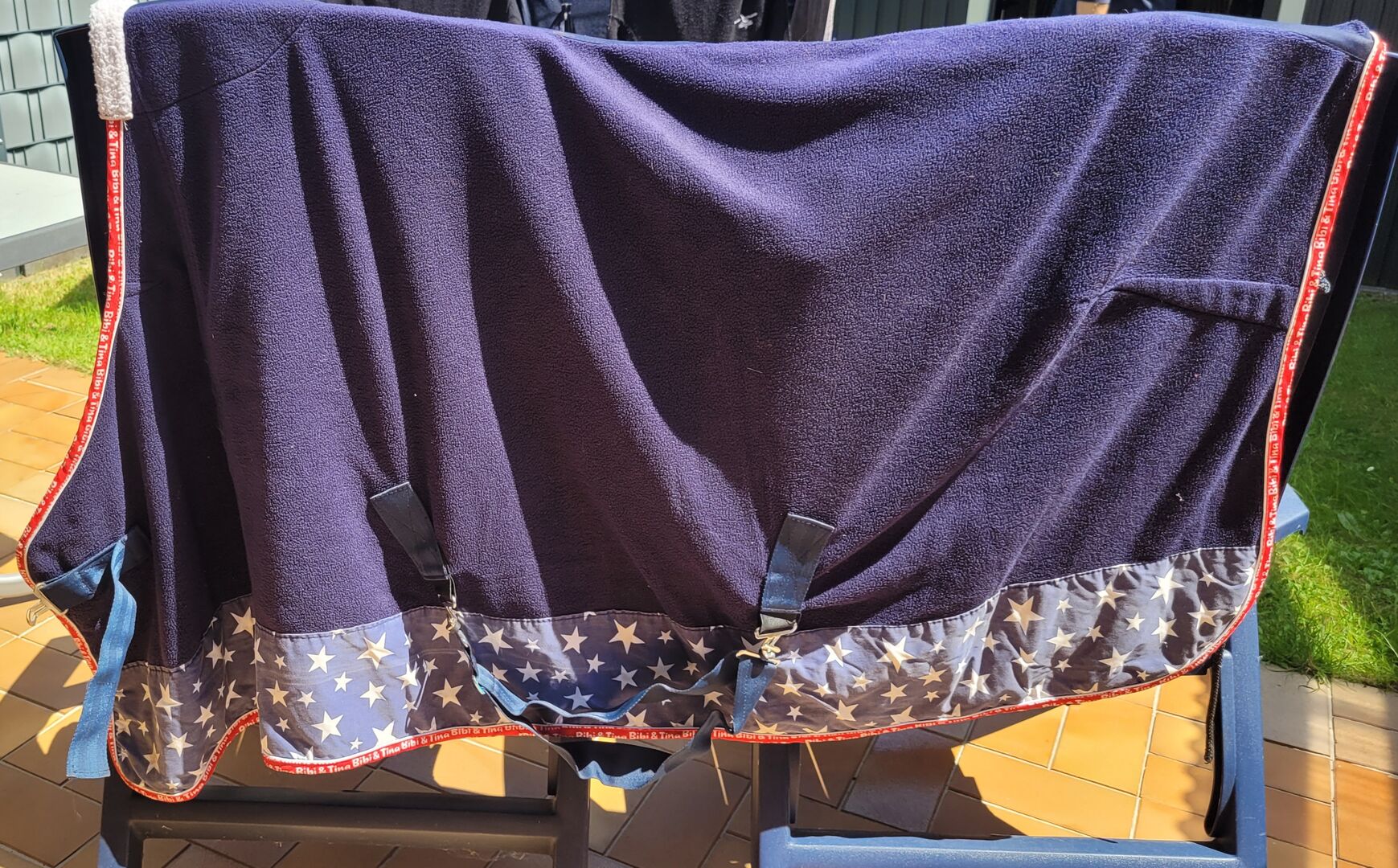 Bibi & Tina sweat blanket - This sweat rug has light signs of use on the buckles, but is otherwise clean both inside and out. The Velcro closures are all intact and without dirt. This Bibi and Tina blanket has a measurement of 125cm.