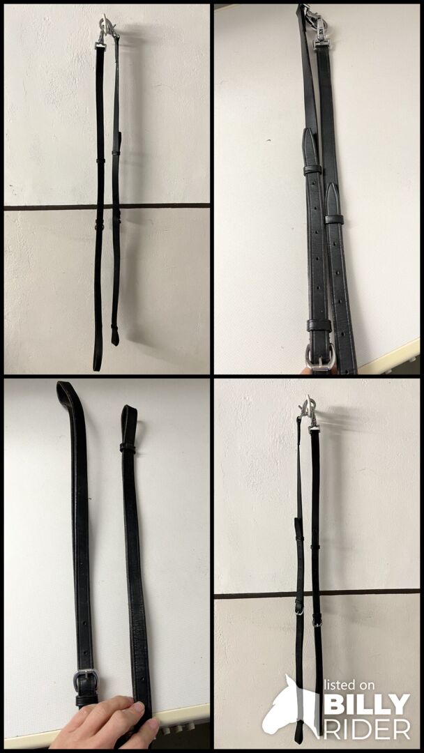 I sell here a pair of leather (without rubber ring) in the size pony. However, the binders fall out so large that I used them for my warmblood (1.76 m stick measurement).