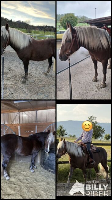 Location: Switzerland, Canton Baselland Date of birth: 05.02.2020 (just over 5.5 years old) Height: approx. 152 cm, still growing 1-2cm Sire: Malibu Sire: Modus von Montan Dam: Nanny Mc Phee Origin: Black Forest Equine passport available Import papers available - 01.04.2022