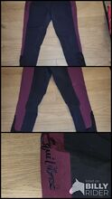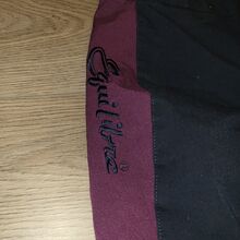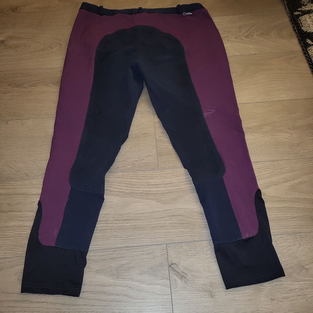 Breeches Full seat - I am selling a nice used ladies breeches from the brand Equilibre in size 44 in two colors in purple/dark blue with blue full leather trim. On the right side of the back of the knee, the surface of the fabric is a little rubbed off by riding, but without a hole and does not affect the function.
