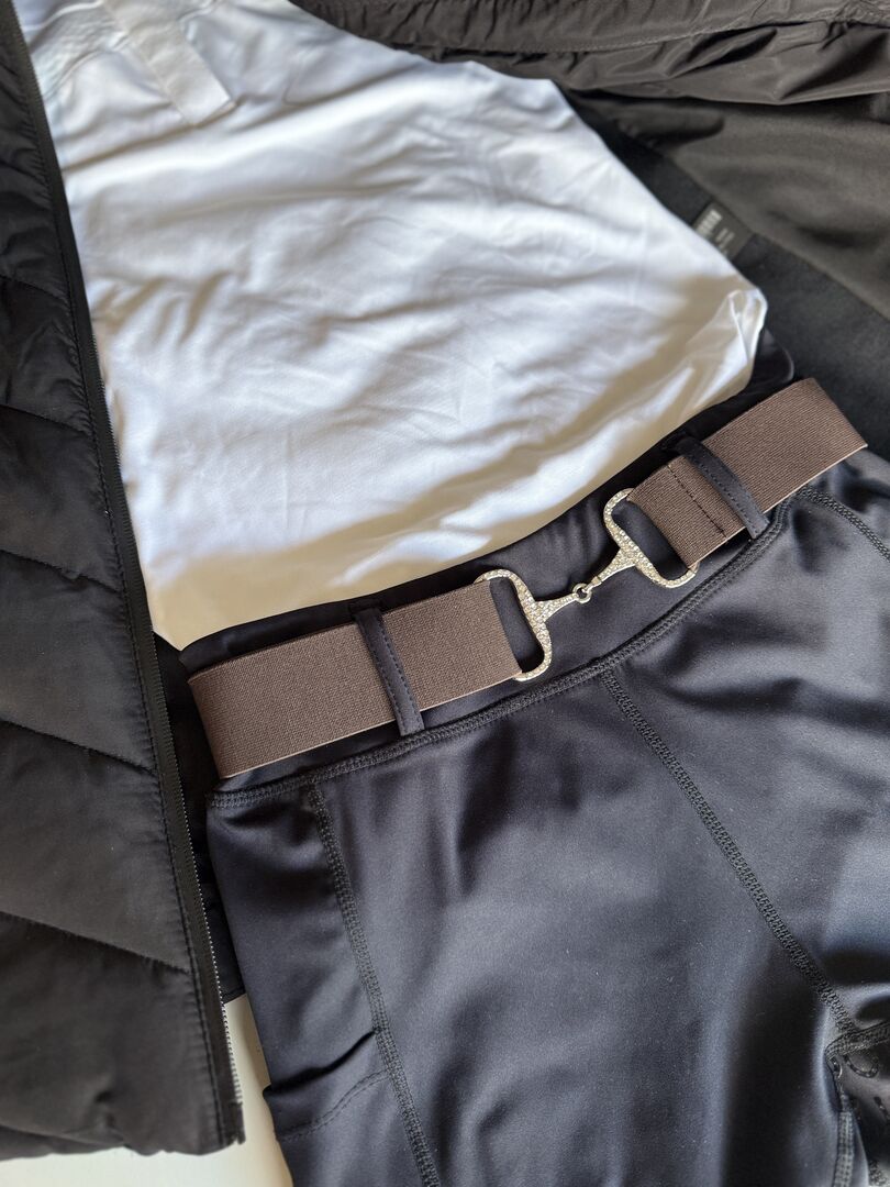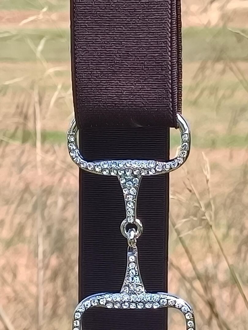 brown crystal horsebit belt buckle - Elegant riding belt, combining style and comfort. Elasticized, with a back strap, it is designed for a perfect fit and trimmed with piping for a touch of elegance, as well on the road as on the road.
