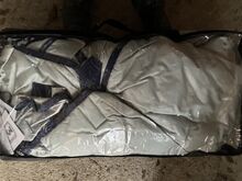 waterproof and breathable Power Turnout, 300 g stay-dry fleece lining, no filling Power Turnout Extra, 300 g stay-dry fleece inner lining, 300 g filling Silver-colored outer material, sun-reflecting Ballistic nylon outer material Click'n Go system with "Magnet Snap-lock" fastener "Stay-dry" inner lining with antibacterial finish Sun-reflective aluminum coating Shoulder pleats for more freedom of movement Cross straps Silk-feel lining in the shoulder area leg straps Tail flap Tail strap Velcro fastening for neck piece (Classic Cut only) compatible with all BUCAS quilts and coolers Color: silver Private sale no guarantee or warranty