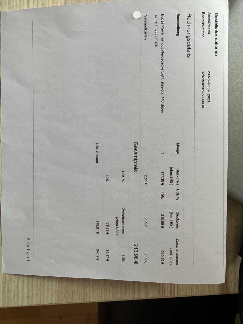 Bucas Power Turnout Light/140 - Silver - The rug is in very good condition (original invoice enclosed, original price: 210 EUR), has rarely been used and has been professionally washed for sale (invoice enclosed).
