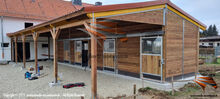 - outdoor stables - indoor stalls - shelters - hayracks Our stables stand for: - Highest quality - Maximum snow load resistance Equipment of all models: - Solid, hot-dip galvanized steel posts - Stable doors with separate door frame, reinforced hot-dip galvanized steel construction and laminated safety glass in the upper area - Brown, impregnated tongue and groove boards
