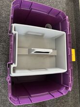 Busse grooming box in purple with yellow fastener and grooming kit - Selling my Busse grooming box in beautiful purple with yellow closure. Including various accessories (self-assembled) but everything important included. I also offer a halter rope of 2 m length. The grooming items and the box are in a used but good condition. Please contact me if you have any questions