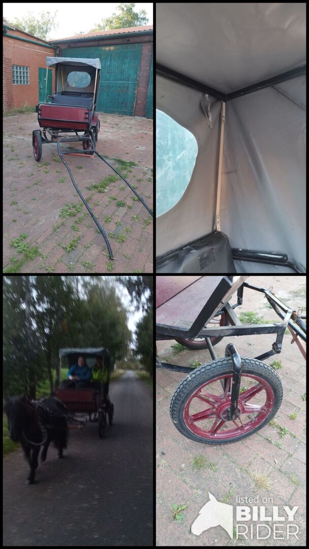 carriage with roof ready to drive immediately for sale (Shettlander/Pony) - For sale is the carriage pictured with tarpaulin/cover (not a covered wagon/doctor's carriage), with fork (single carriage).