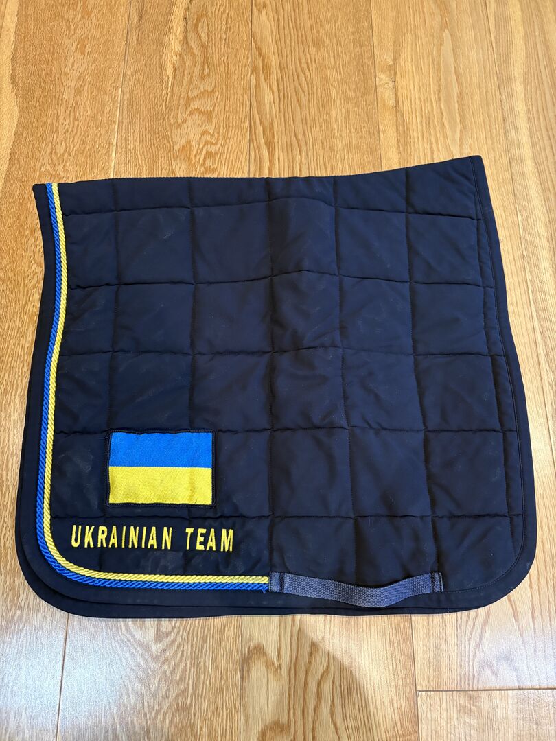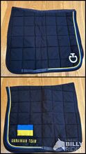 Cavalleria Toscana saddle pad featuring Ukrainian Team embroidery and flag. High quality pad with classic square quilting and Cavalleria Toscana logo.