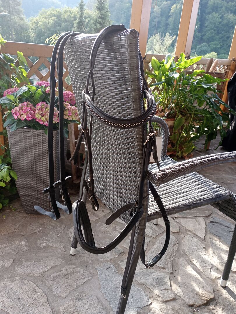Cavallo snaffle with reins - Beautiful bridle by Cavallo, browband with rhinestones. Soft leather, always well cared for. Reins included