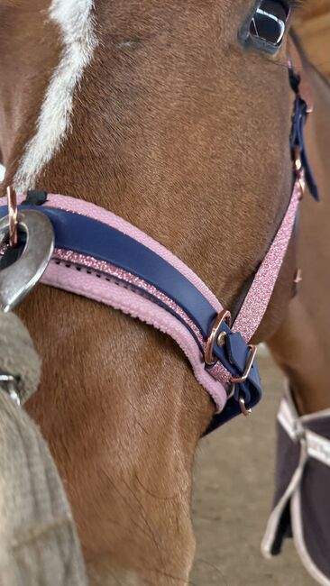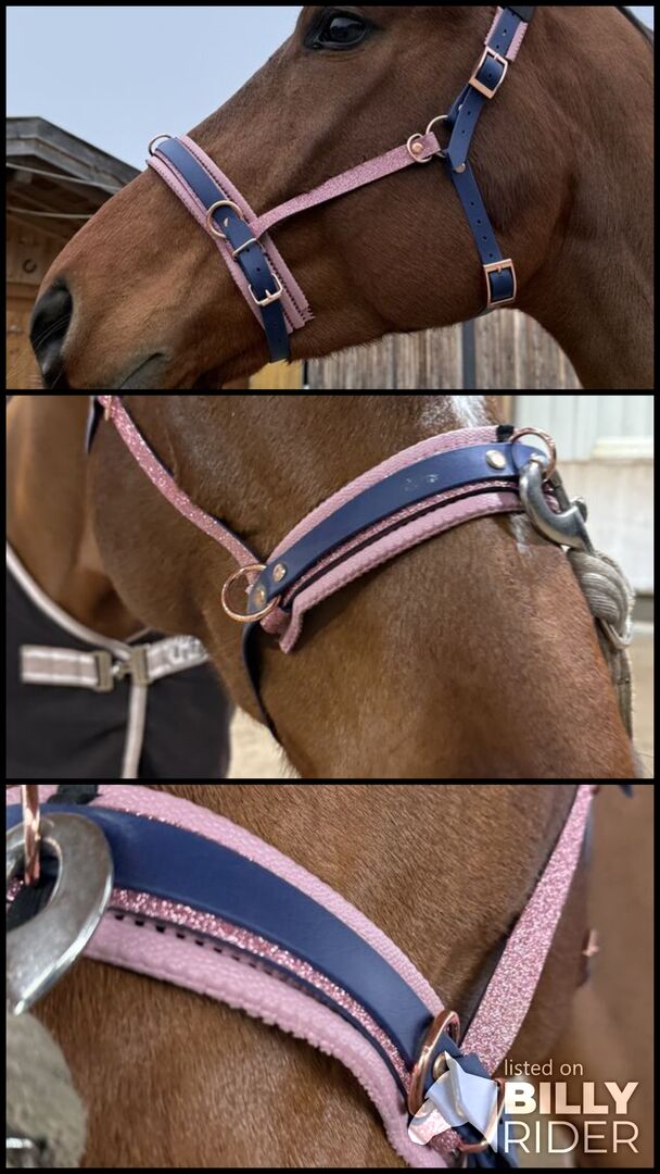 Cavesson Horse WB Biothane Pink Glitter Blue - I am selling my customized cavesson from EquiDreams. It glitters pink and is made of dark blue Biothane material. Super condition, like new. No damage or anything else. It is easy to clean and can be kept super clean and neat.