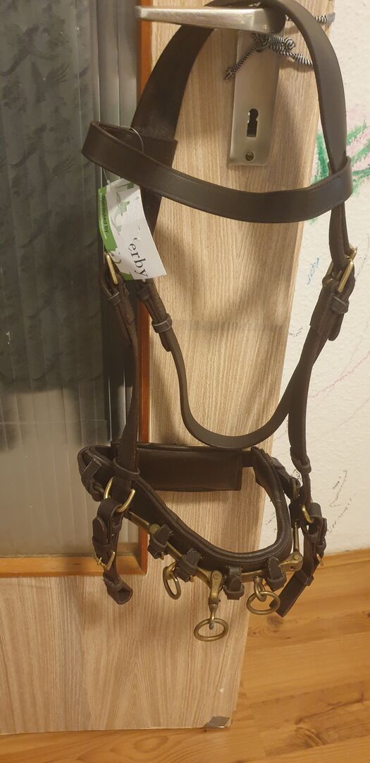 Cavesson WB genuine leather,,Derby " Brown ,, With bit strap - New cavesson WB genuine leather ,Brown, from "Derby".