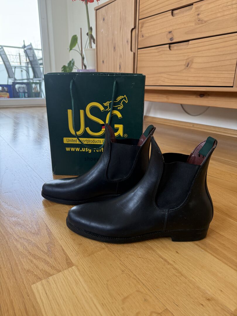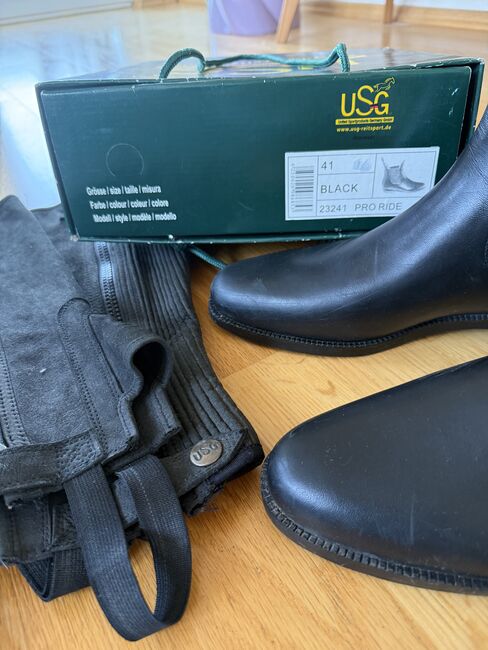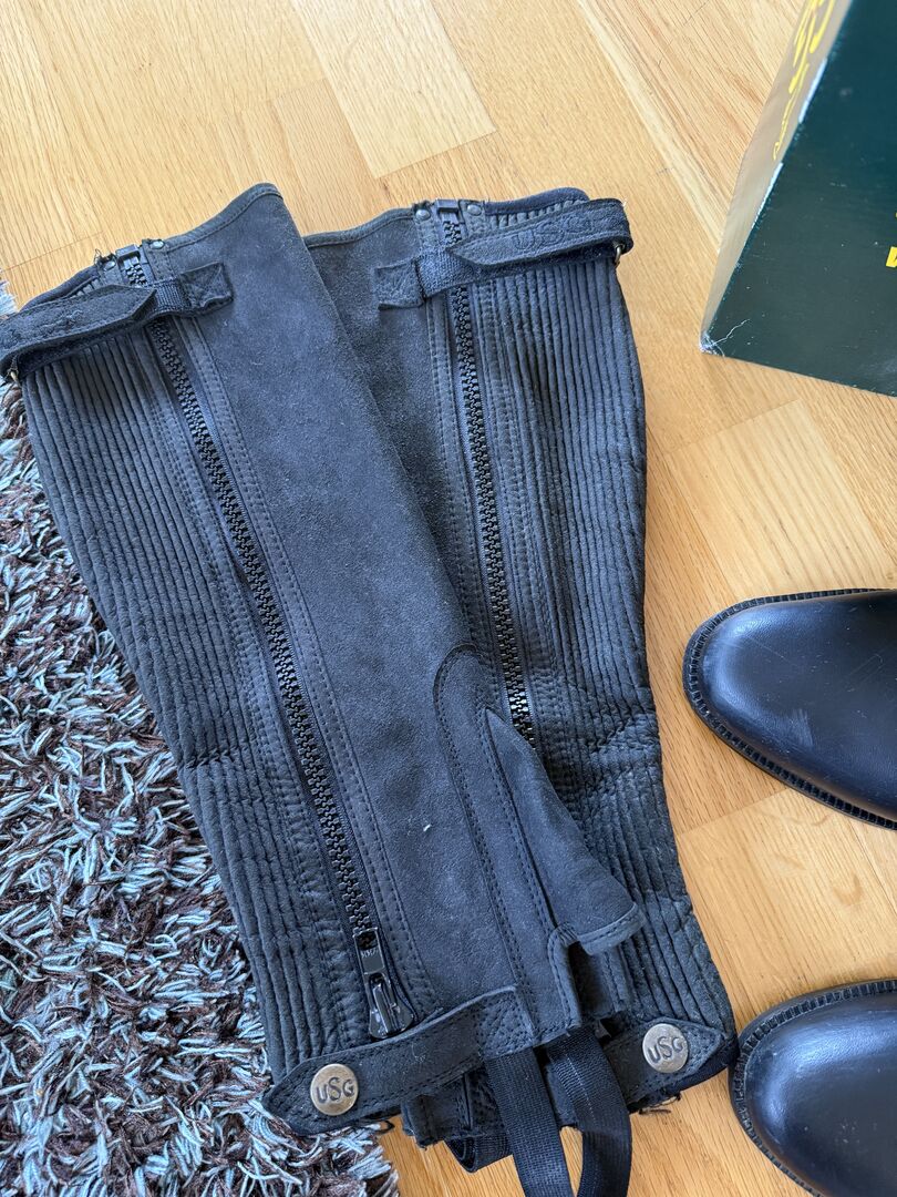 Chaps + boot shafts - in very good condition - Very well preserved riding chaps + boot shafts from USG in size 41