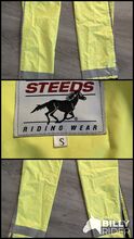 Chaps in neon yellow - Start thinking about the dark season now. For sale here are beautiful chaps that you can strap around your legs so that you can be seen better in the dark season. The chaps are size S