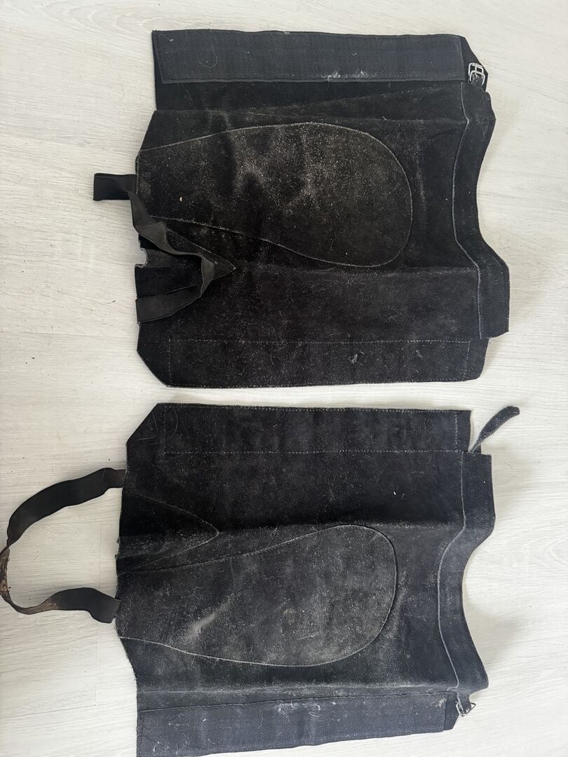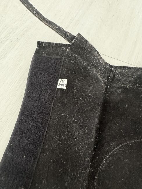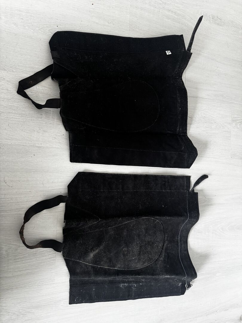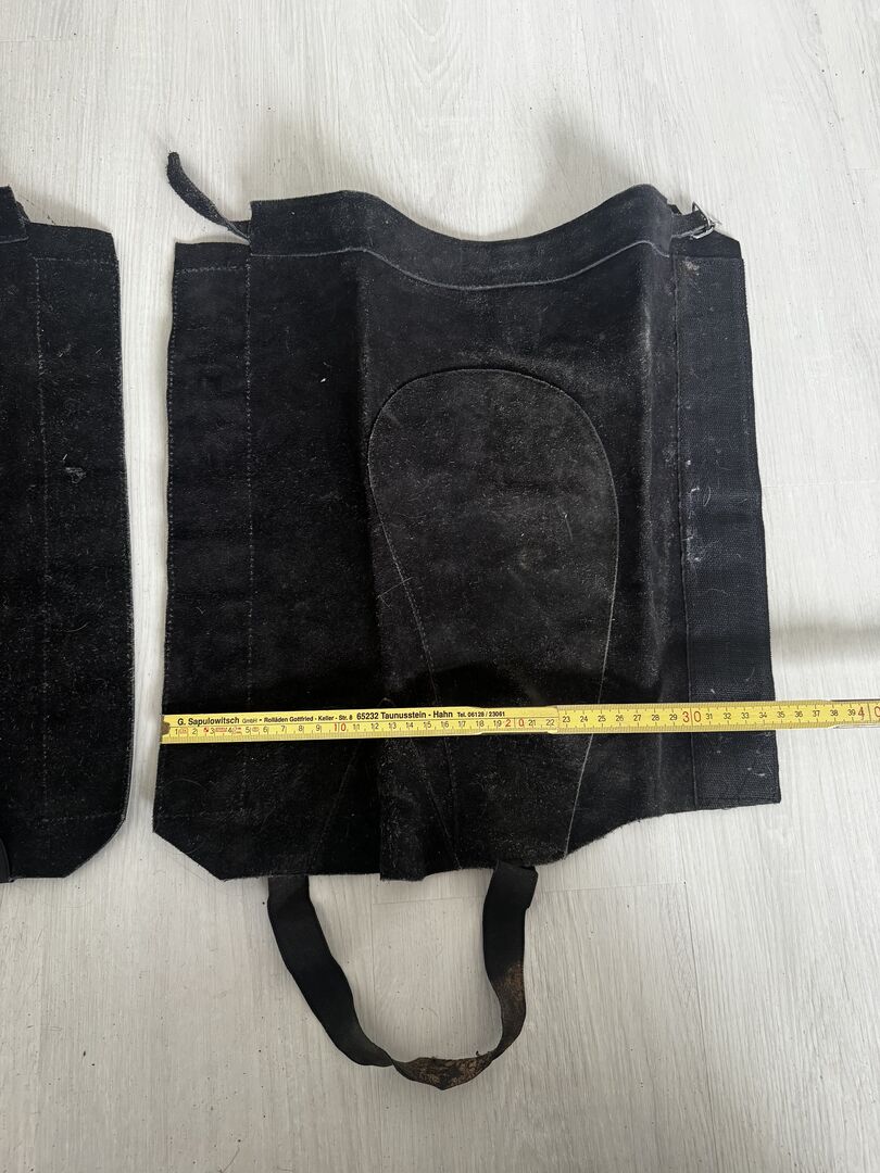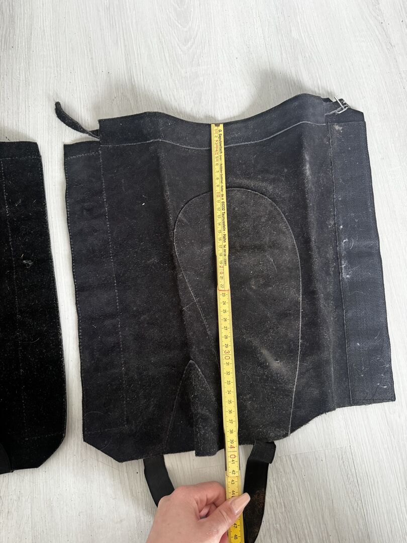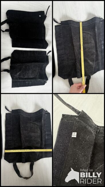 Chaps size M - Leather Schaps size M Measurements can be taken from the pictures, would have to be cleaned as they have been in the cellar for a long time, the elastic band for under the foot is a little worn out. Otherwise in good condition. Private sale therefore no guarantee or return. Shipping possible for a fee.