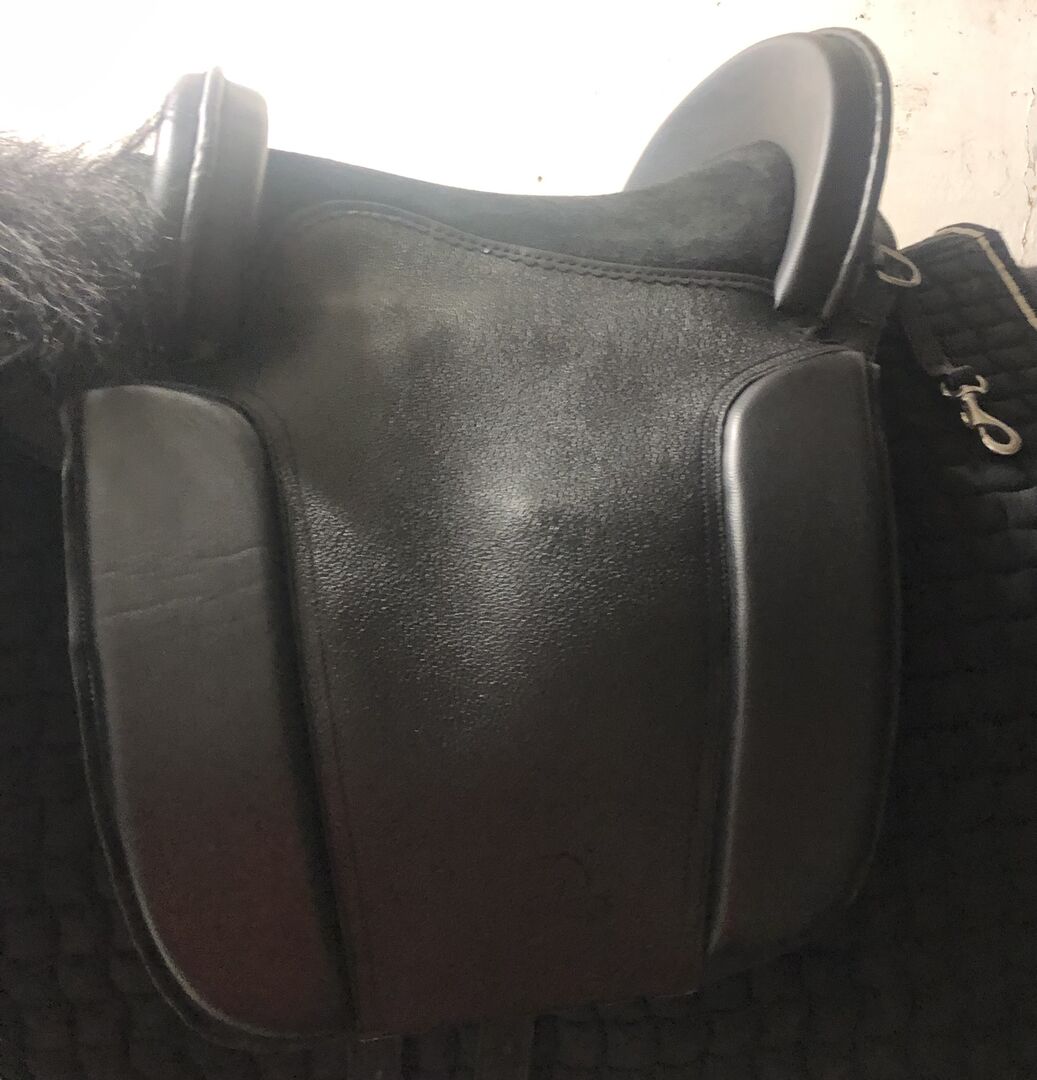 The saddle is sold without the as new mono stirrup leathers (80 cm), stirrups and the girth (60cm). These can be purchased for an additional charge (+50€).