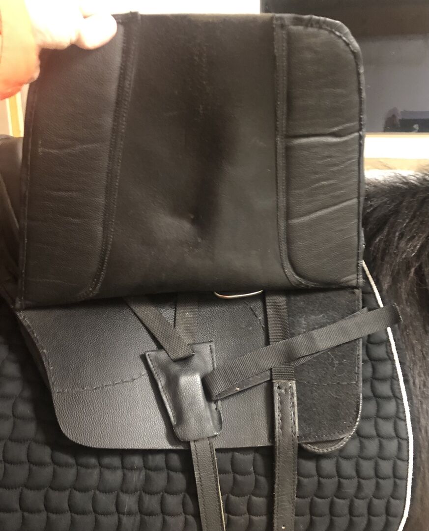 Chezz saddle Iberico leather with Zalea - Very well maintained Chezz Iberico black smooth leather and suede (See pictures). Newer model with chamber cutout Thanks to the short panels (40 cm) it is also suitable for short horses. Seat area (between the pads) about 32 cm, total saddle length about 48 cm, fits 38/40/42. Individually adjustable to the horse's back Very light Zalea (used) removable and washable The saddle was little used and treated very carefully Traces of use and condition see also pictures