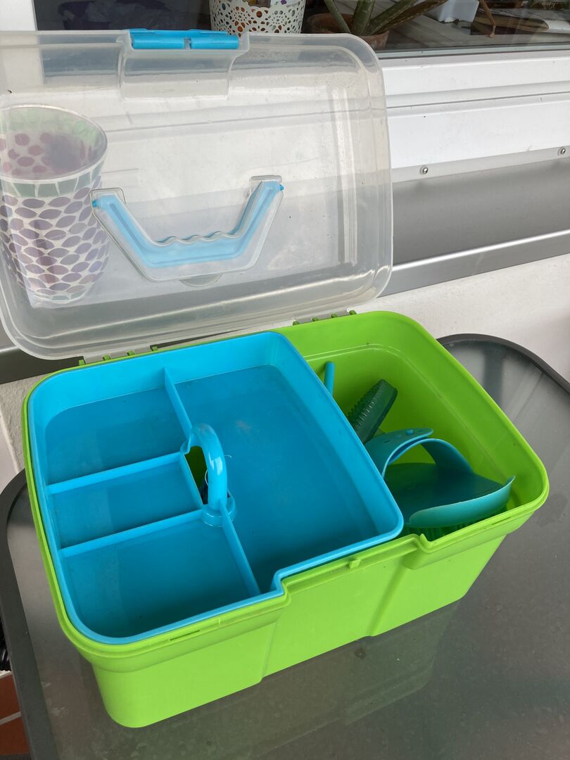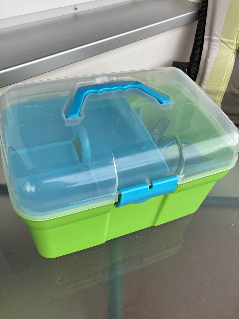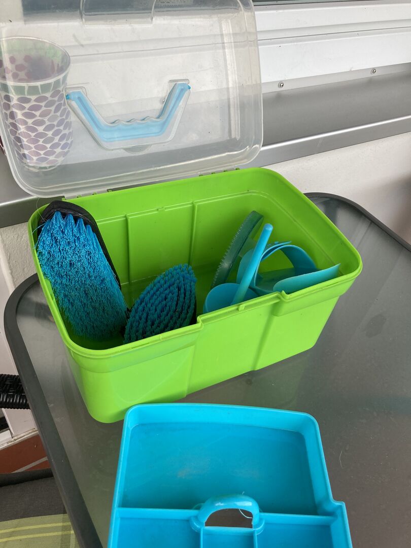 Cleaning Box - Plastic grooming box with grooming brush, root brush, rubber curry comb, hoof brush