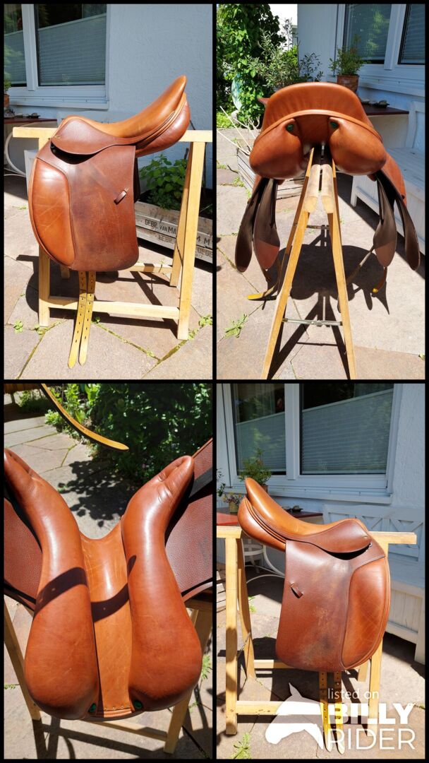 Cobra dressage saddle 17.5 possibly also for Black Forest or similar. - I am selling my used Cobra saddle; Color: newmarket, flap with pre-cut, long bars, medium knee rolls, seat size 17.5. It was mounted on a small Black Forest horse (148 cm), which is no longer ridden. Signs of wear see photos (picture with horse is from 2009). Private sale, no guarantee/warranty. Price incl. shipping 350 EUR, on collection 335 EUR.