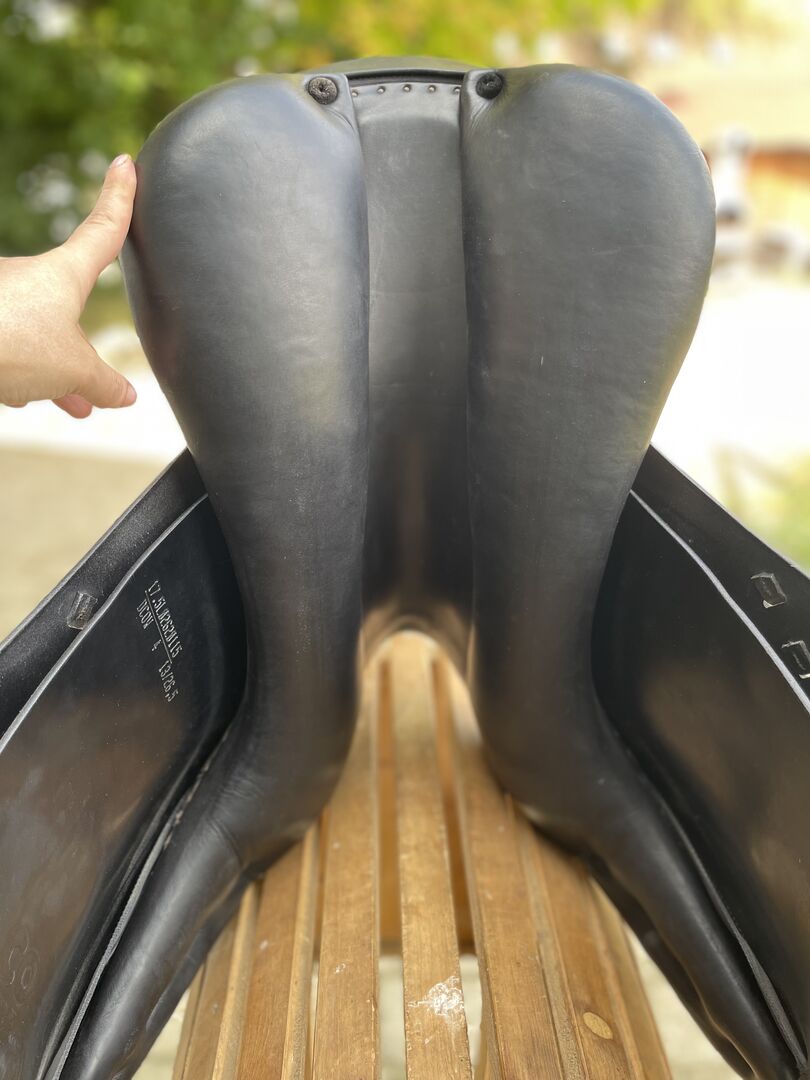 It has a narrow to medium chamber width. The gullet plate can be cold adjusted by the saddler. It is being sold due to a new purchase.