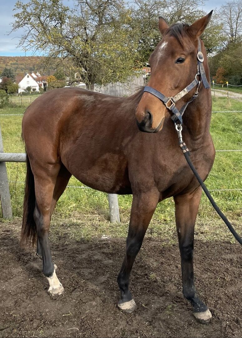 My 4 year old mare from my own breeding is for sale. She is a very bright little mare, very cuddly and with a very courageous and curious character. She was allowed to grow up well cared for with us and is now ready to start the next chapter of her life as a riding horse. She was bred as a polo horse. However, as experience has shown that horses are very good all-rounders and she has not yet been trained in any particular direction, she is certainly also suitable for any other riding style, such as dressage or show jumping, or simply as a leisure horse.