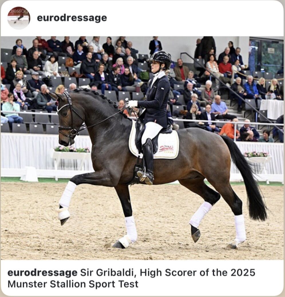 Colt by Sir Gribaldi - A top colt, born on June 26, 2025, is for sale. His sire is the exceptional stallion Sir Gribaldi from Gestüt Sprehe, who shone with top scores in his tests - including 9.3 for rideability, 9.0 for trot and canter and 9.2 for overall impression. His pedigree via Secret - Gribaldi - Buddenbrock, supplemented by Weltmeyer and Lauries Crusador xx, stands for the highest quality of movement, willingness to perform and sporting prospects.