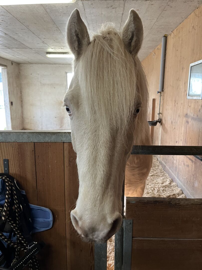 Since December last year, the Connemara gelding has unfortunately been displaying very conspicuous behavior. When riding, lunging and walking, he occasionally holds his head in an unnatural tilted position (head tilted to the left). Tullo has been extensively examined by a vet, chiropractor, osteopath and veterinary practitioner. An exact cause for this behavior has not yet been found. He is currently still undergoing treatment.