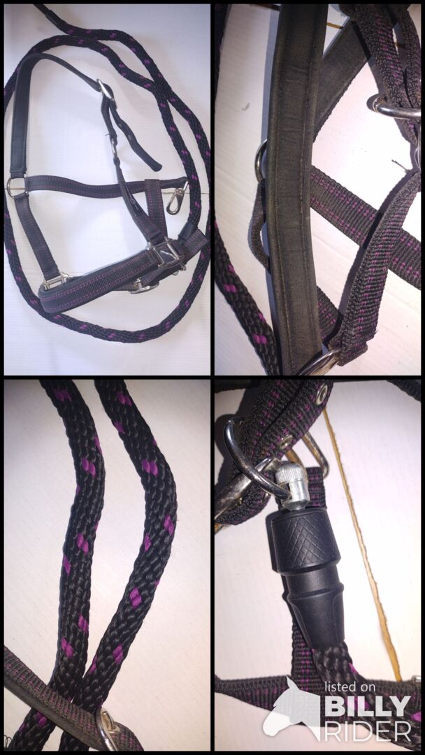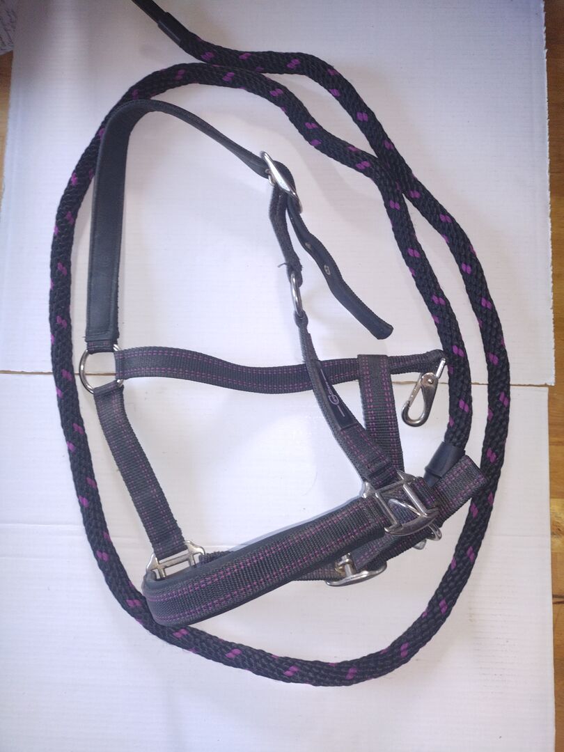 Covalliero goleygo halter with rope black/fuchsia pony - Little used halter with matching lead rope.